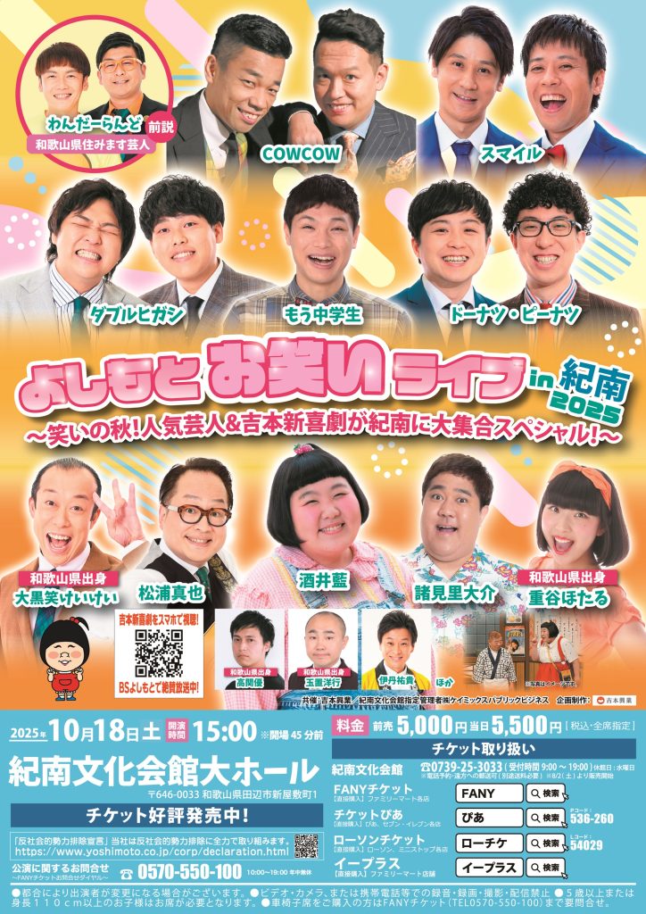 【和歌山】よしもとお笑いライブin紀南2025~笑いの秋!人気芸人&吉本新喜劇が紀南に大集合スペシャル!~