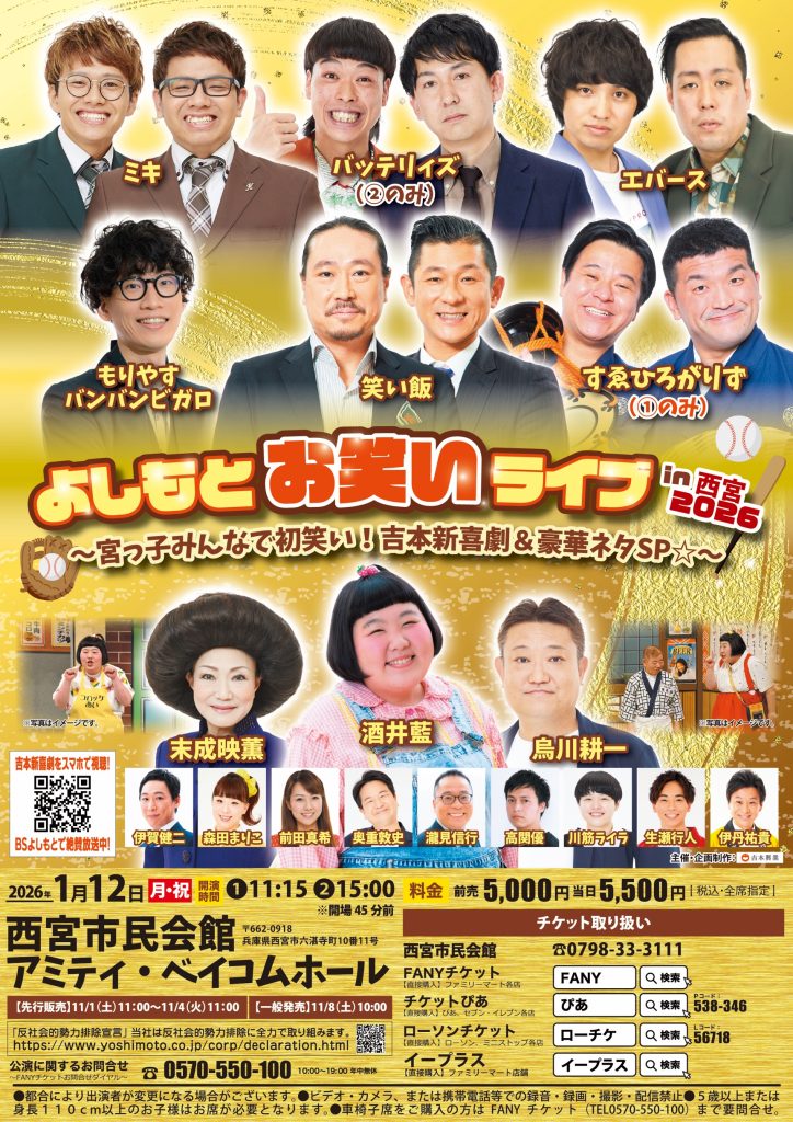 【兵庫】よしもとお笑いライブin西宮2026 〜宮っ子みんなで初笑い!吉本新喜劇&豪華ネタSP☆〜