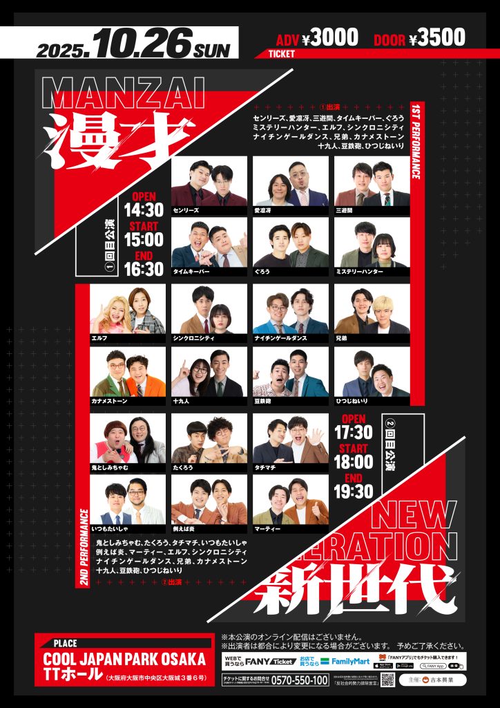 パンクブーブー、とろサーモン、トレンディエンジェル、相席スタート、カゲヤマ、スパイク、ニッポンの社長、ZAZY、オズワルド、レインボー